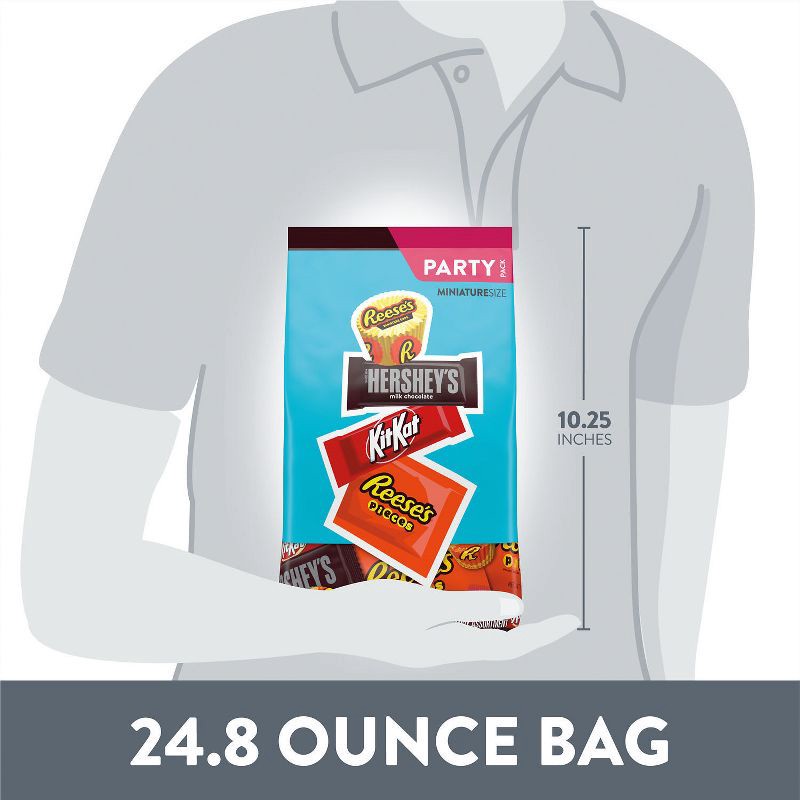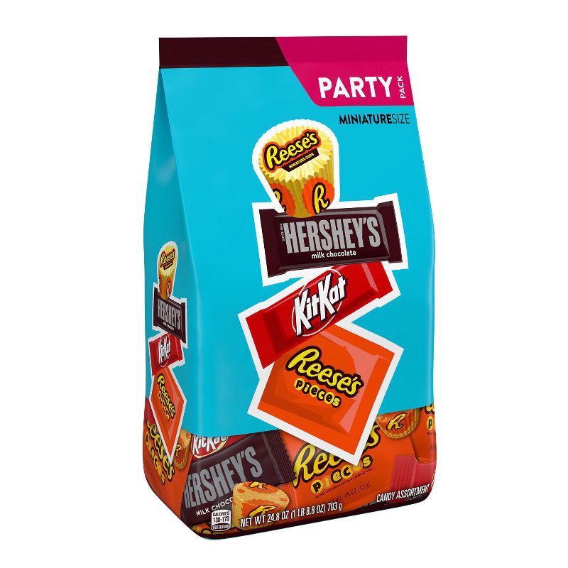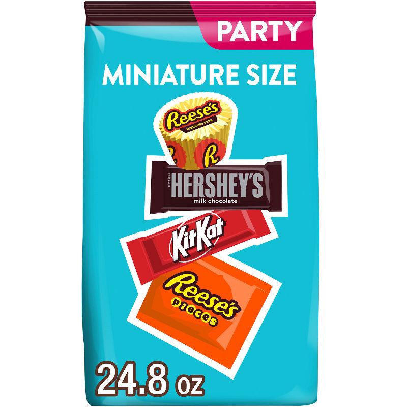 - Contains one (1) 24.8-ounce bulk party pack of HERSHEY'S, KIT KAT® and REESE'S Miniature Assorted Milk Chocolate and Peanut Butter Candy