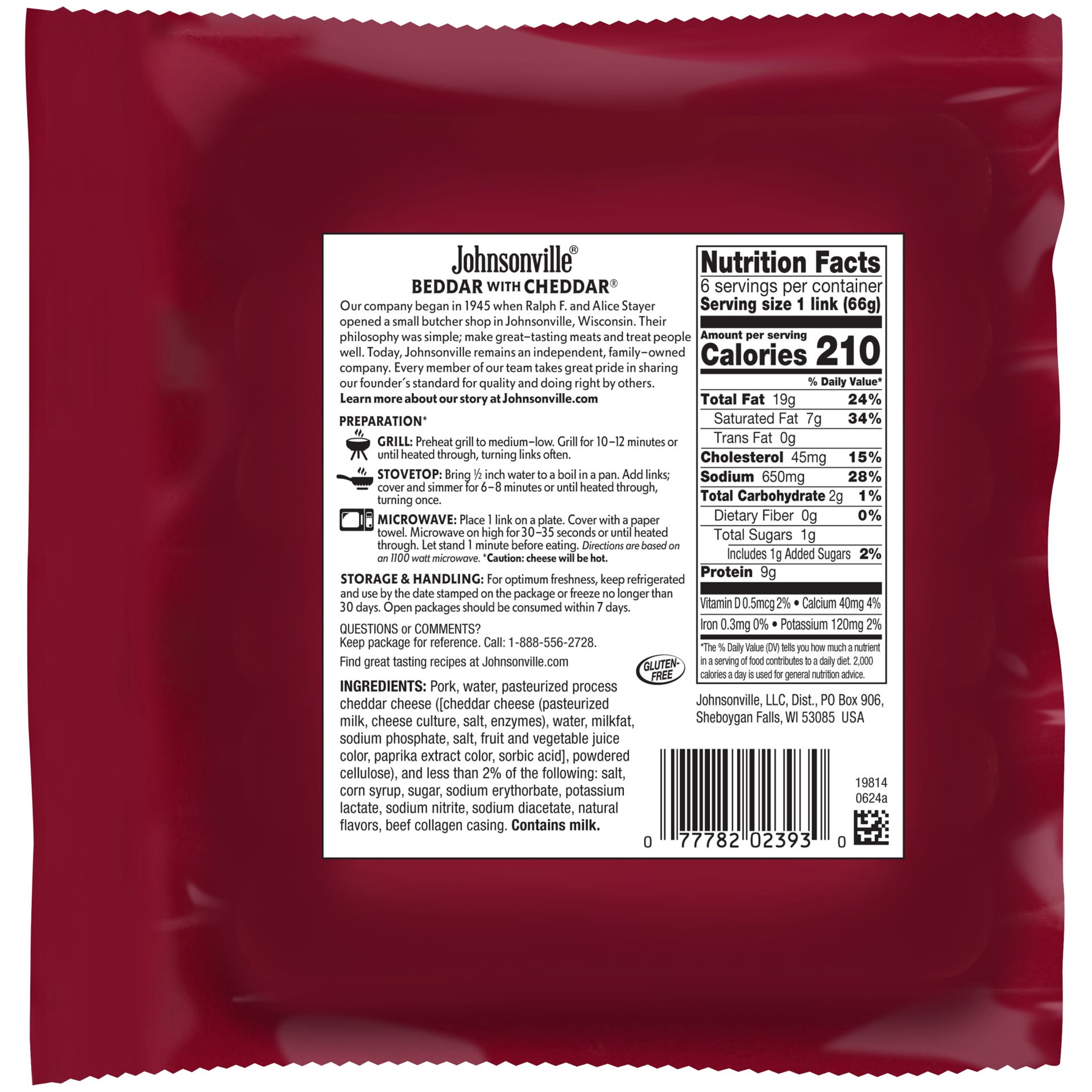 Johnsonville Smoked Beddar With Cheddar Sausage 6 Links - 14 Oz