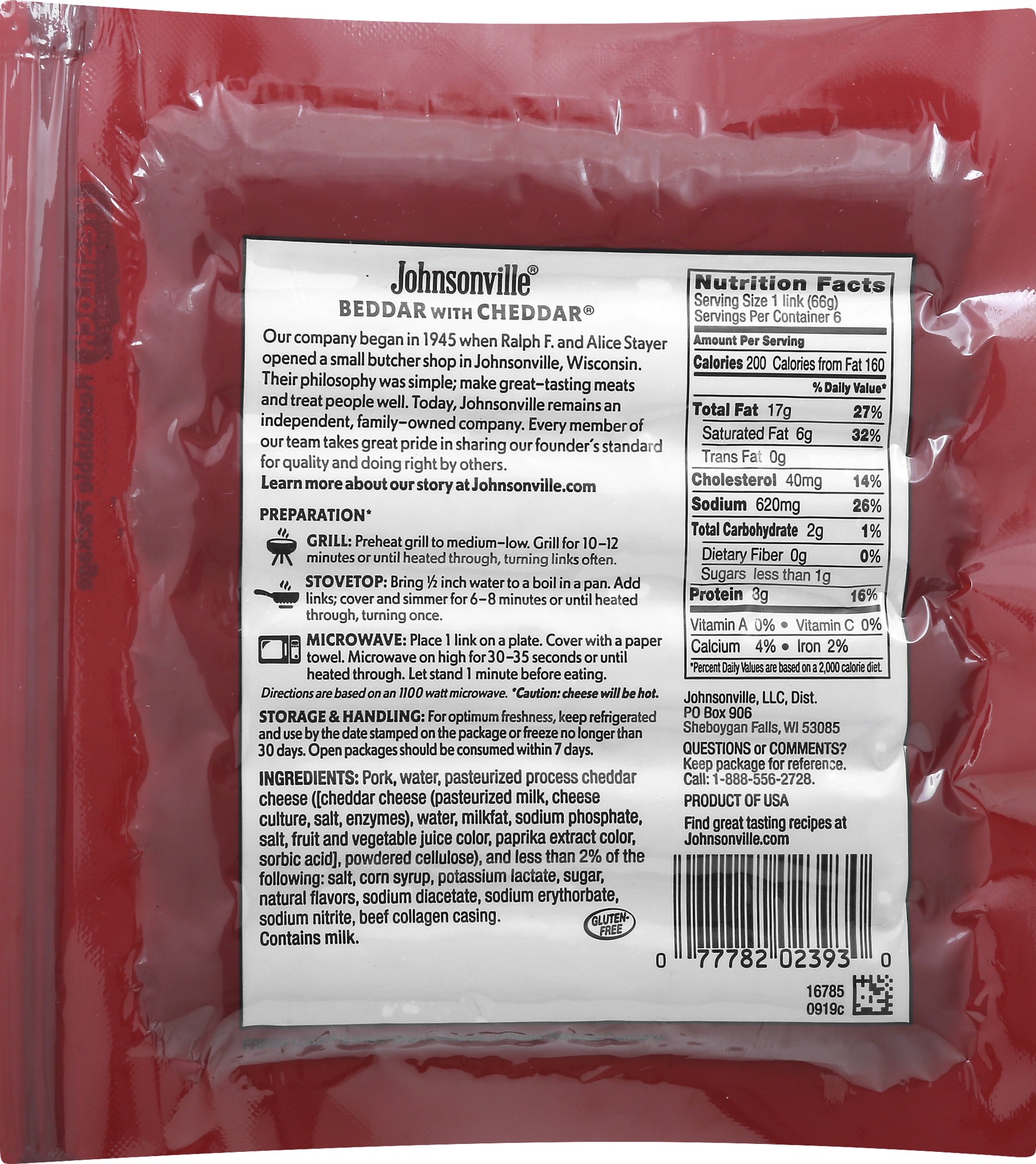 Johnsonville Smoked Beddar With Cheddar Sausage 6 Links - 14 Oz
