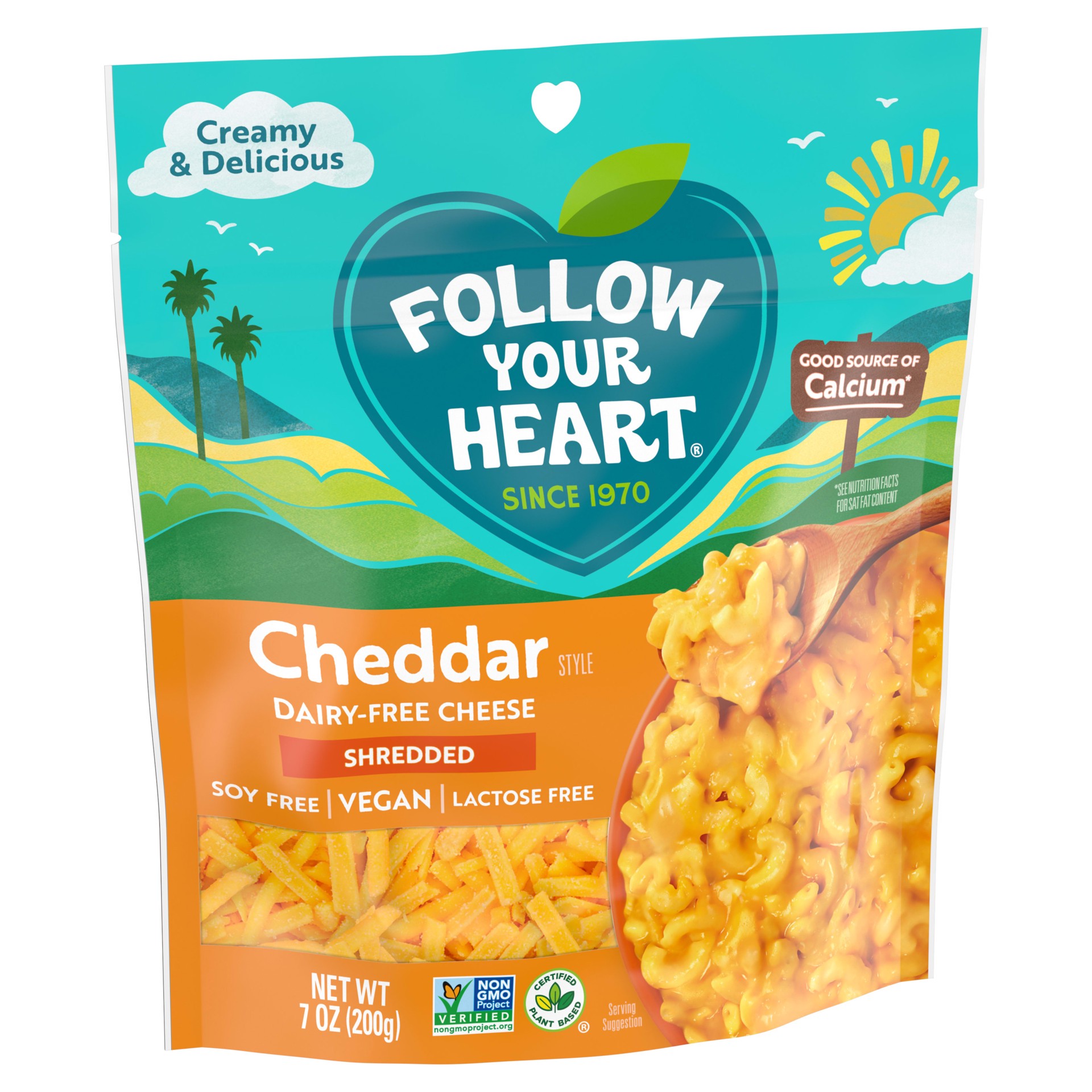 Satisfy your taste buds and feed your soul with new and improved Follow Your Heart Shredded Cheddar Style Dairy Free Cheese. Follow Your Heart is now better than ever! You can make your favorites with…
