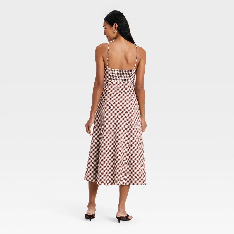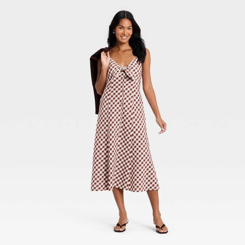Women's Sleeveless Bow-Front Midi A-Line Dress - A New Day™ Brown Gingham XL