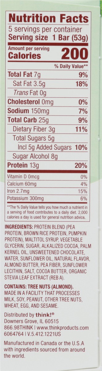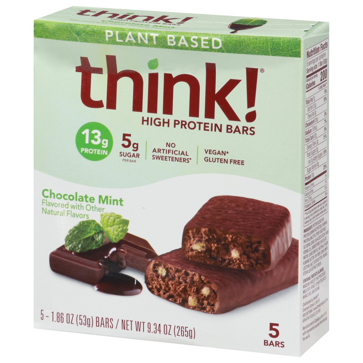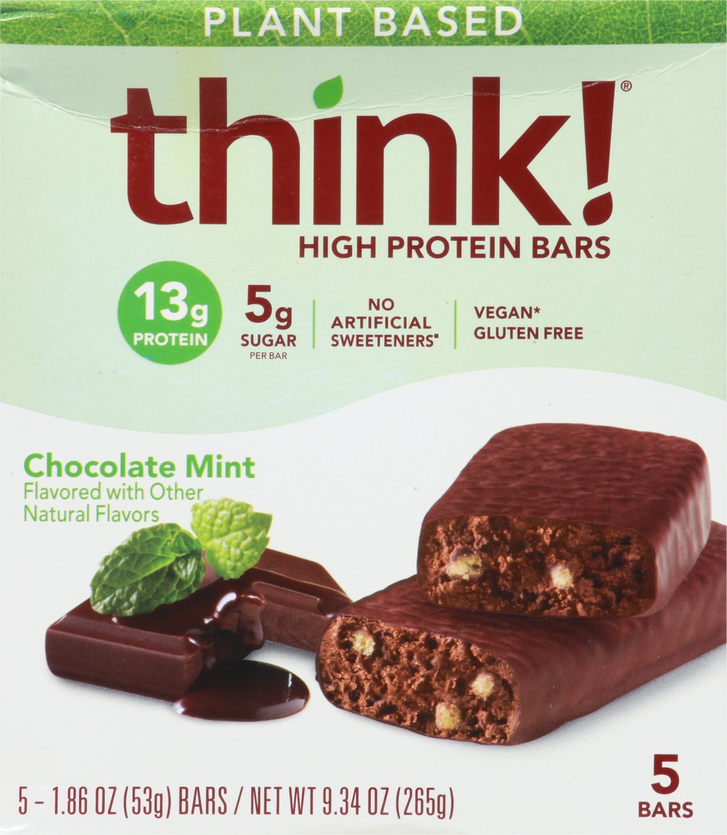 think! Plant Based Chocolate Mint High Protein Bar - 5 x 1.86 oz Bars