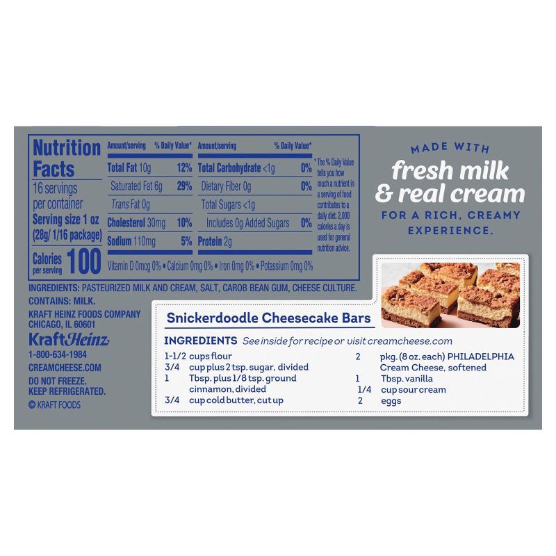 - ORIGINAL CREAM CHEESE: Creamy and delicious, Philly cream cheese is perfect to use as an ingredient in recipes for cheesecake, frosting, potatoes, eggs, pasta and cream cheese fruit dip