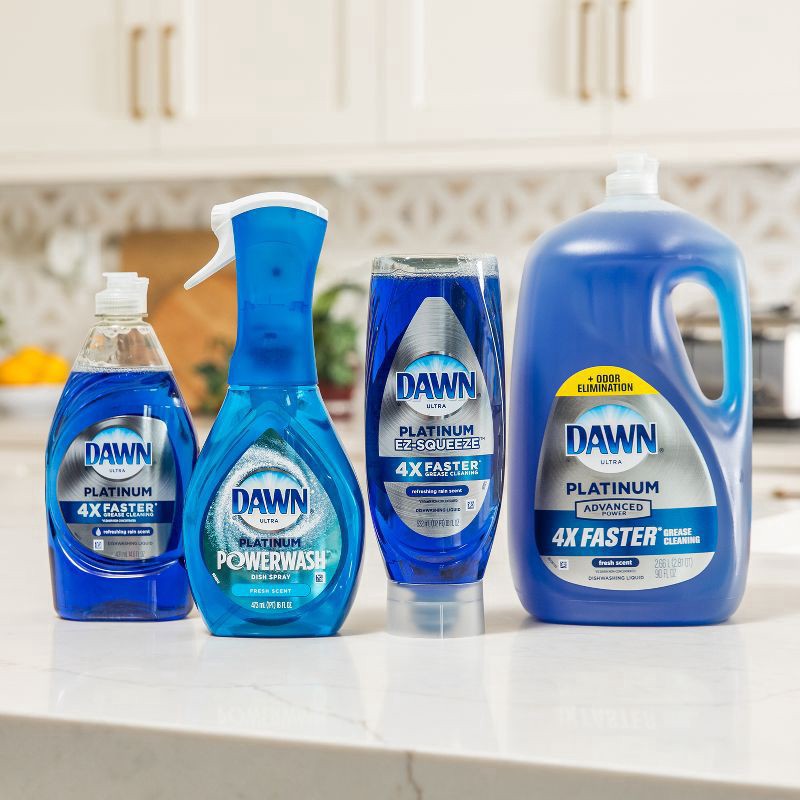 Dawn Platinum gives you a squeaky clean that you can see and feel. Dawn Platinum's improved formula easily removes 99% of grease and food residue. Dawn is tough on grease, but gentle. Gentle enough th…