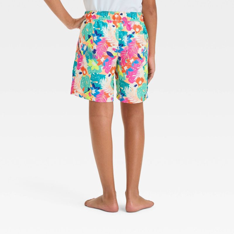 Your kid will be ready for waterside activities in summery style in these Floral Printed Swim Shorts from Cat & Jack™. These swim shorts are made from soft, stretchy twill fabric with a built-in brief…