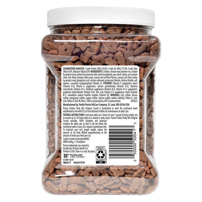 Indulge your cat's natural instinct for poultry flavors with Purina Friskies Party Mix Original Crunch cat snacks. These Friskies cat treats deliver 100 percent complete and balanced nutrition for adu…