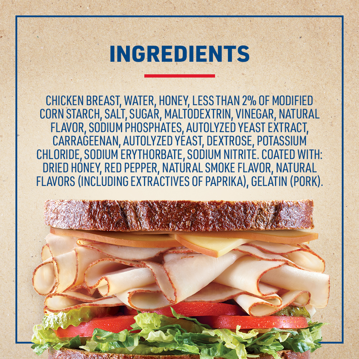 Chicken Breast, Water, Honey, Less than 2% of Modified Corn Starch, Salt, Sugar, Maltodextrin, Vinegar, Natural Flavor, Sodium Phosphates, Autolyzed Yeast Extract, Carrageenan, Autolyzed Yeast, Dextro…