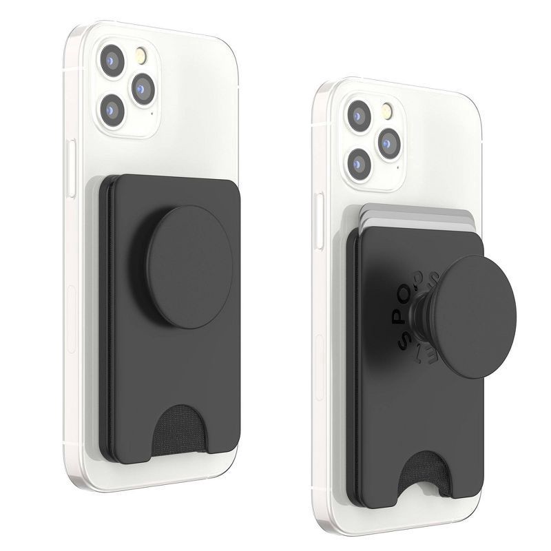 PopSockets Magnetic Phone Wallet with Grip and MagSafe, Magnetic Adapter Ring Included - Black