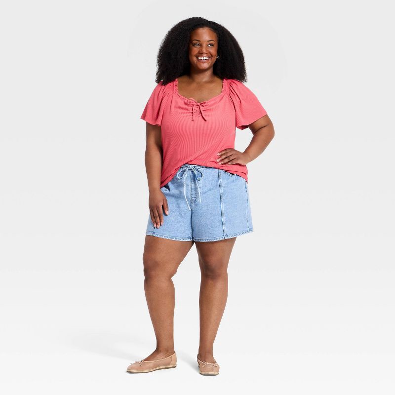From running errands to evening strolls, these High-Rise Tie-Waist Jean Shorts from Ava & Viv™ are a perfect pick. Made from a mix of cotton, recycled cotton, recycled polyester, rayon and spandex, th…