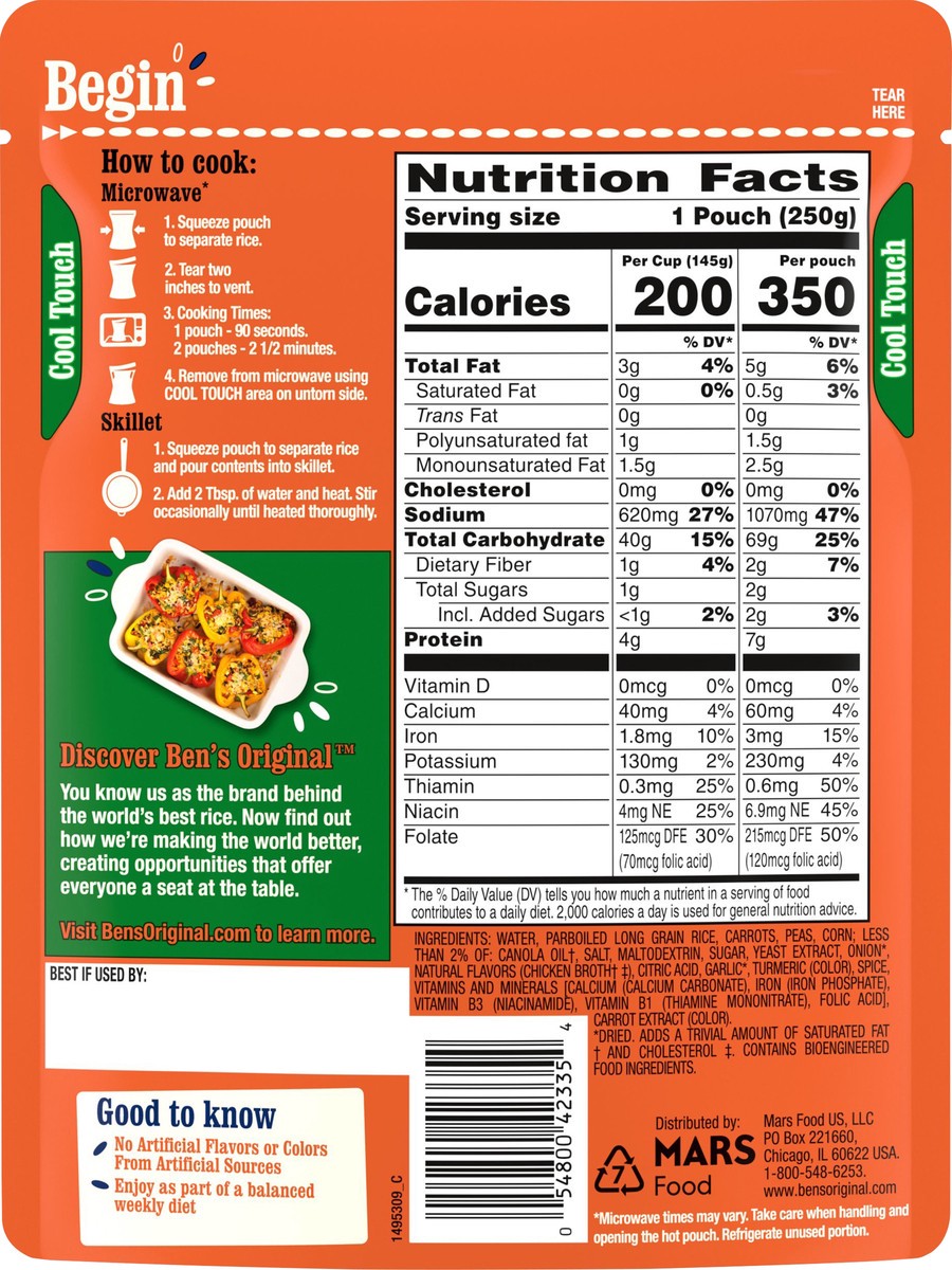Ben's Original Ready Garden Vegetable With Peas Carrots And Corn Rice Pouch - 8.8 Oz