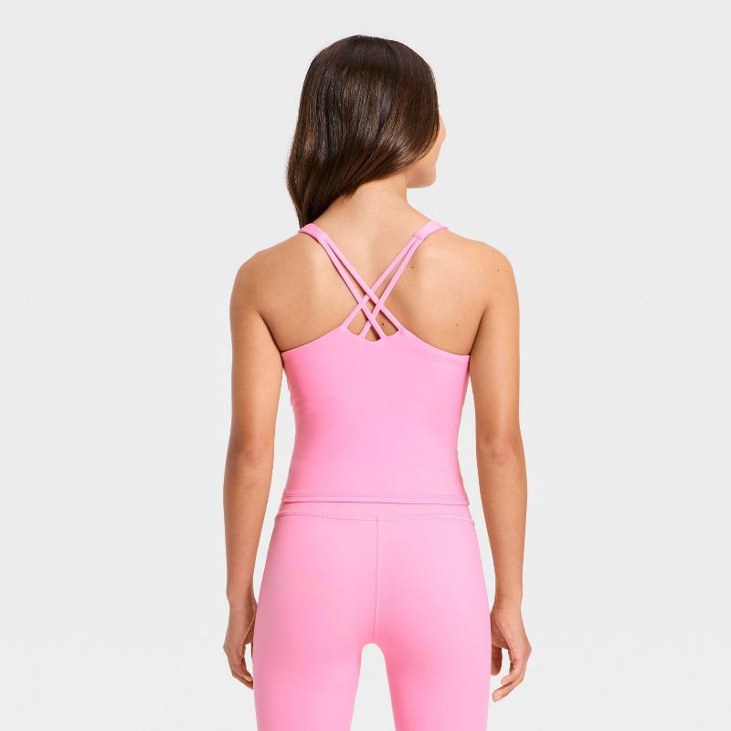 Girls' Strappy Crop Tank Top - All In Motion™ Vibrant Pink S