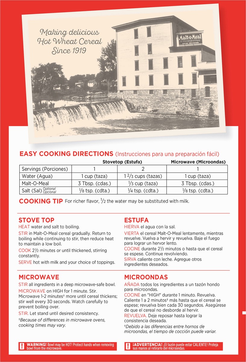 The original comfort food! Original Malt-O-Meal cereal is a hot, hearty bowlful of happiness. This quick-cooking wheat cereal is the fastest way to a wholesome, hot breakfast. The perfect food for a c…