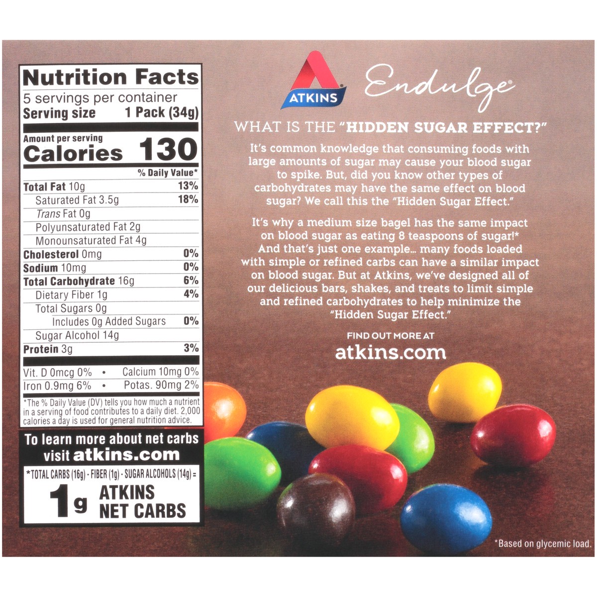 Atkins Endulge Chocolate Peanut Candies. Sweet Endulge Chocolate Peanut Candies are packed with chocolatey flavor. These mouth-watering, low sugar* candies combine the decadent tastes of chocolate and…