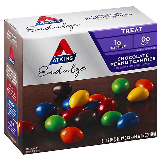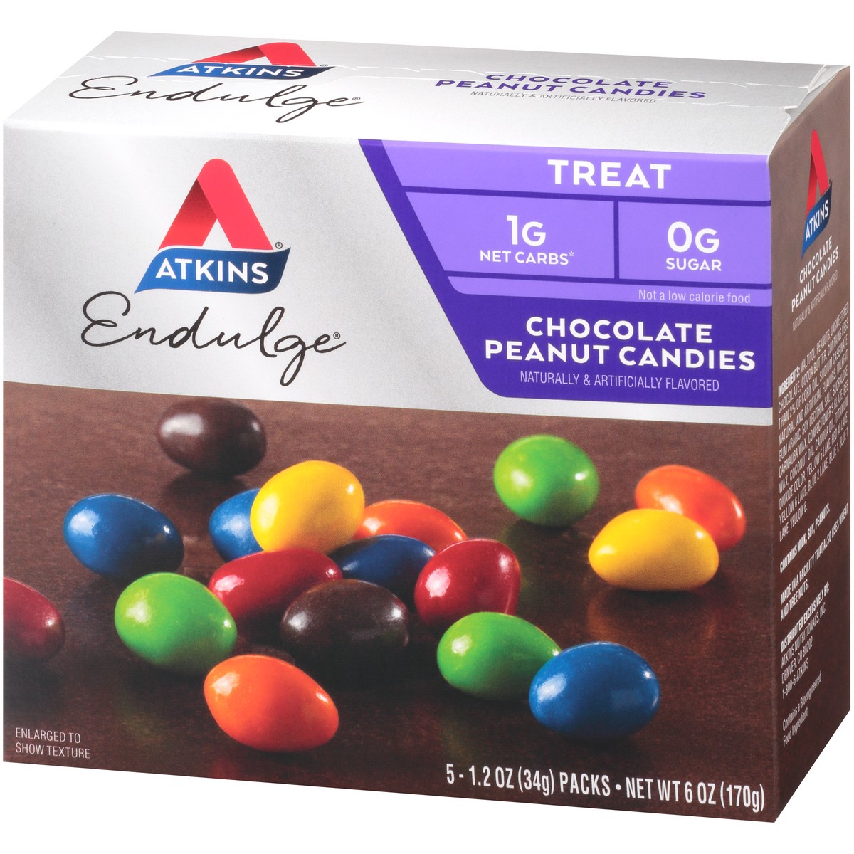 Atkins Endulge Chocolate Peanut Candies. Sweet Endulge Chocolate Peanut Candies are packed with chocolatey flavor. These mouth-watering, low sugar* candies combine the decadent tastes of chocolate and…