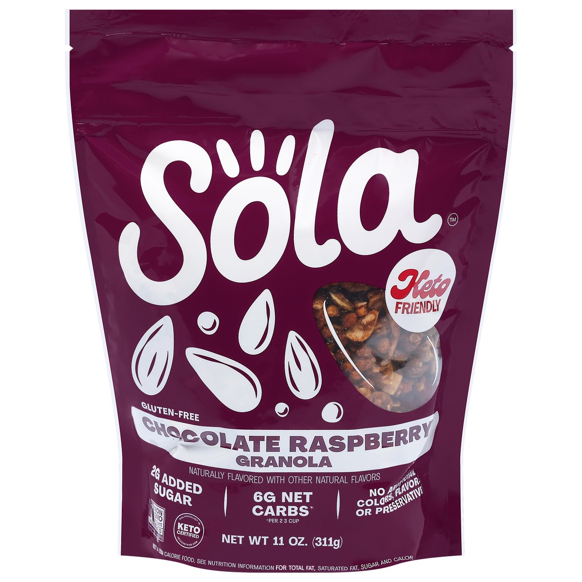 Almonds, Soy Crisp (Soy Protein Isolate, Tapioca Starch, Salt), Sunflower Seeds, Erythritol, Allulose, Pumpkin Seeds, Sunflower Oil, Coconut, Chocolate Chips (Cane Sugar, Unsweetened Chocolate, Cocoa …