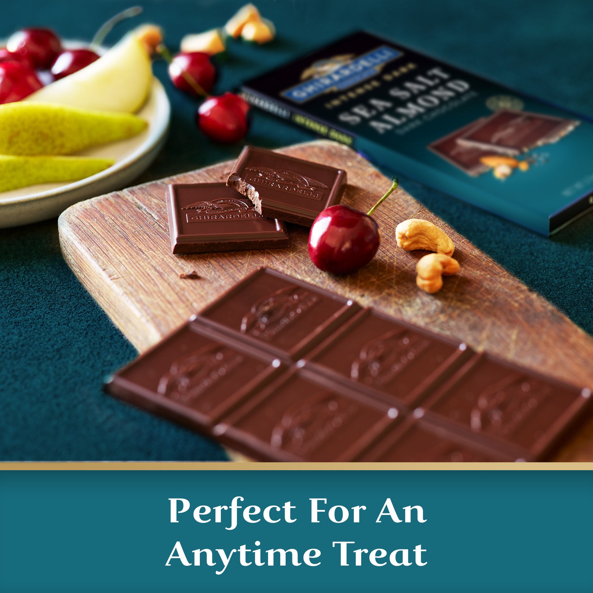 Each intensely delicious square of the GHIRARDELLI Intense Dark Sea Salt Almond Chocolate Bar caters to your senses. Indulge after dinner, or serve GHIRARDELLI Intense Dark chocolate candy at your nex…