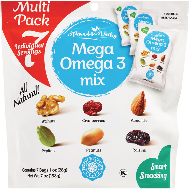 Contains: peanuts & tree nuts (almonds, walnuts). packed in a facility on shared equipment that may contain peanuts, tree nuts, soy, wheat, sesame, milk, eggs & fd&c colors.
