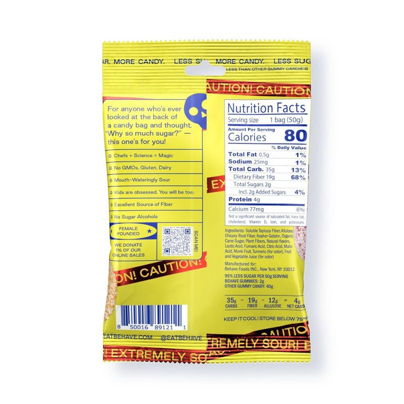 WARNING: Extremely Sour Candy! If you're not a true sour candy lover, these are not for you. At BEHAVE, less sugar means more candy! We took out most of the sugar and all of the artificial junk, leavi…
