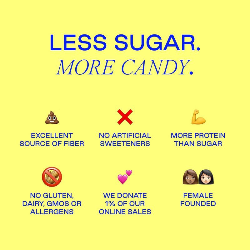 - 95% less sugar than traditional candy