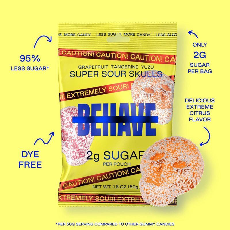 BEHAVE Grapefruit Tangerine Yuzu Super Sour Candy Skulls - 1.8oz
