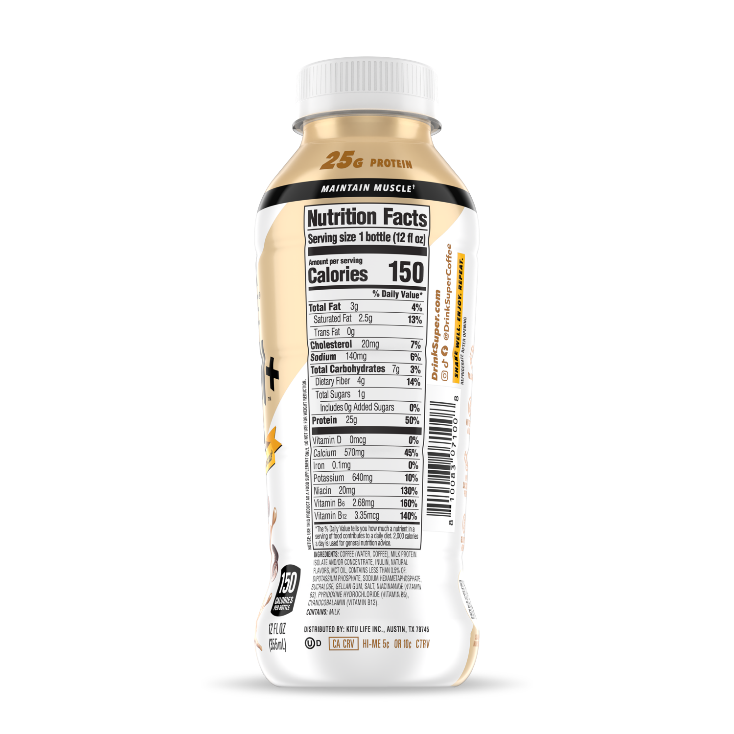 COFFEE (WATER, COFFEE), MILK PROTEIN CONCENTRATE, NATURAL FLAVORS, COCOA POWDER (PROCESSED WITH ALKALI), MCT OIL, CONTAINS LESS THAN 0.5% OF: MONK FRUIT JUICE CONCENTRATE, DIPOTASSIUM PHOSPHATE,SODIUM…