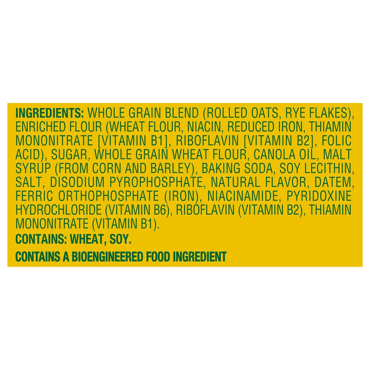 Whole Grain Blend (Rolled Oats, Rye Flakes), Enriched Flour (Wheat Flour, Niacin, Reduced Iron, Thiamin Mononitrate [Vitamin B1], Riboflavin [Vitamin B2], Folic Acid), Sugar, Whole Grain Wheat Flour, …