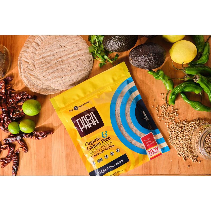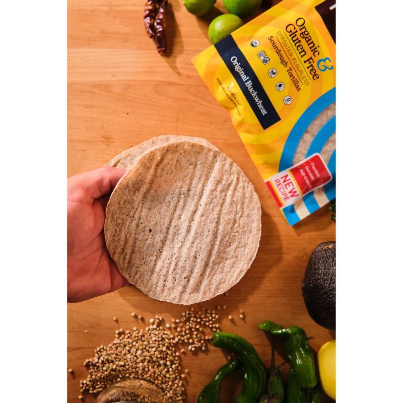 These gluten-free sourdough tortillas are made from just sprouted buckwheat, psyllium husk, and sea salt, then naturally fermented for flavor and easy digestion. Unlike most gluten-free wraps, they co…