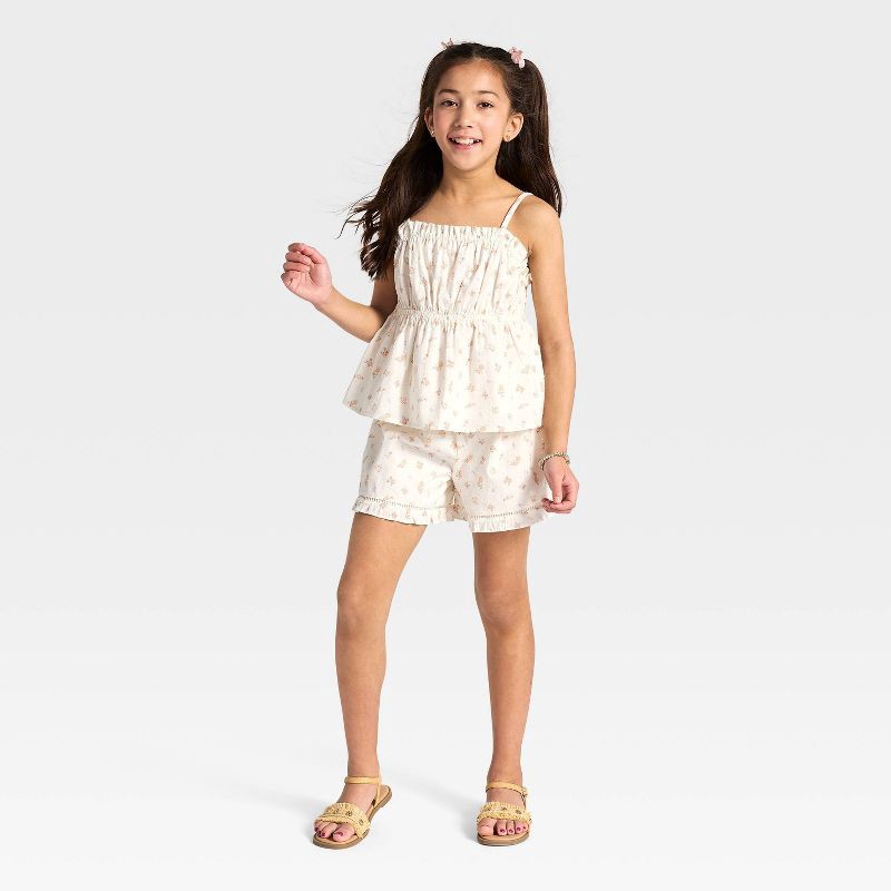 Girls' Swiss Dot Floral Ruffle Pull-on Shorts - Cat & Jack™ Cream S