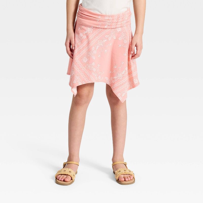 Girls' Handkerchief Hem Bandana Printed Mini Skirt - Cat & Jack™ Coral XL