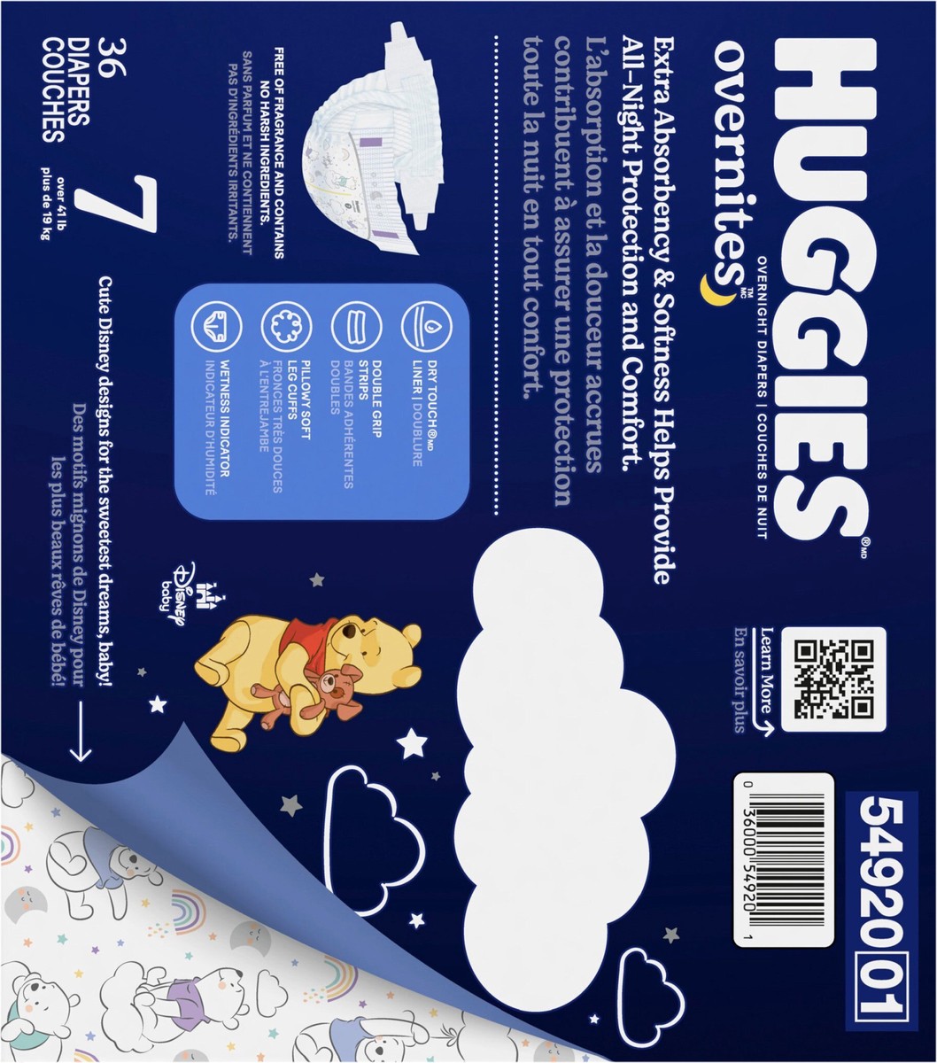Huggies Overnites Nighttime Baby Diapers, Size 7 (41+ Lbs) - 36 Count