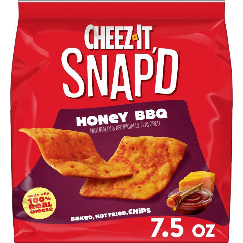 Big cheese taste baked to crispy perfection. Cheez-It Snap'd Honey BBQ cheesy baked chips are super thin and loaded with tons of sweet and smokey flavor. Made with 100% real cheese, Cheez-It Snap'd sn…