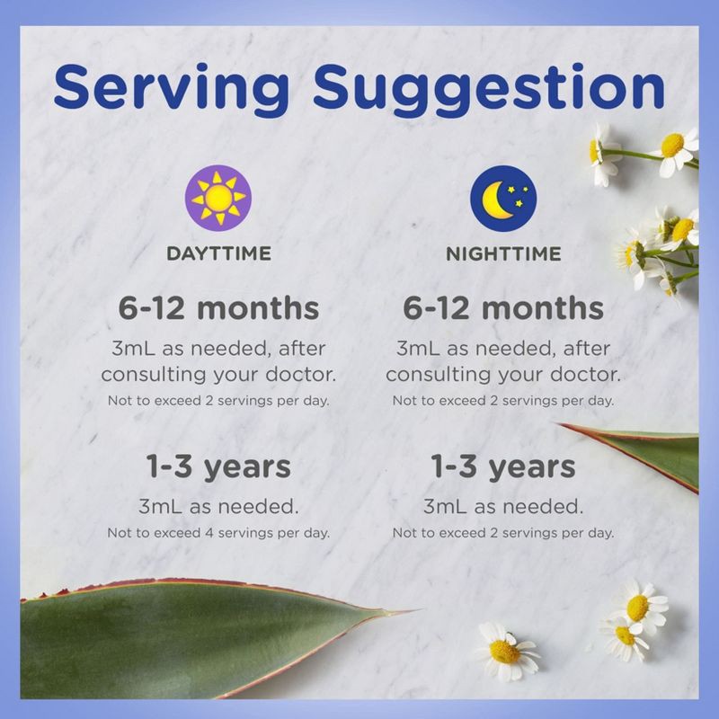- For babies 6-12 months old, give three milliliters as needed, not to exceed two servings per day.