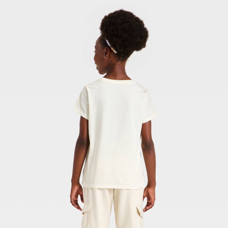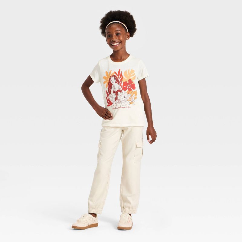 Step out feeling comfy with the Girls' Disney Moana Short Sleeve Graphic T-Shirt in Cream. Made from soft, lightweight jersey fabric, this tee offers a breathable and relaxed feel for school days, pla…