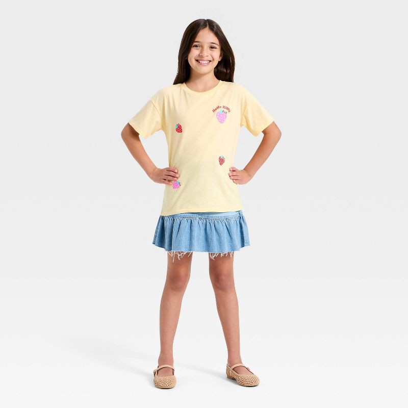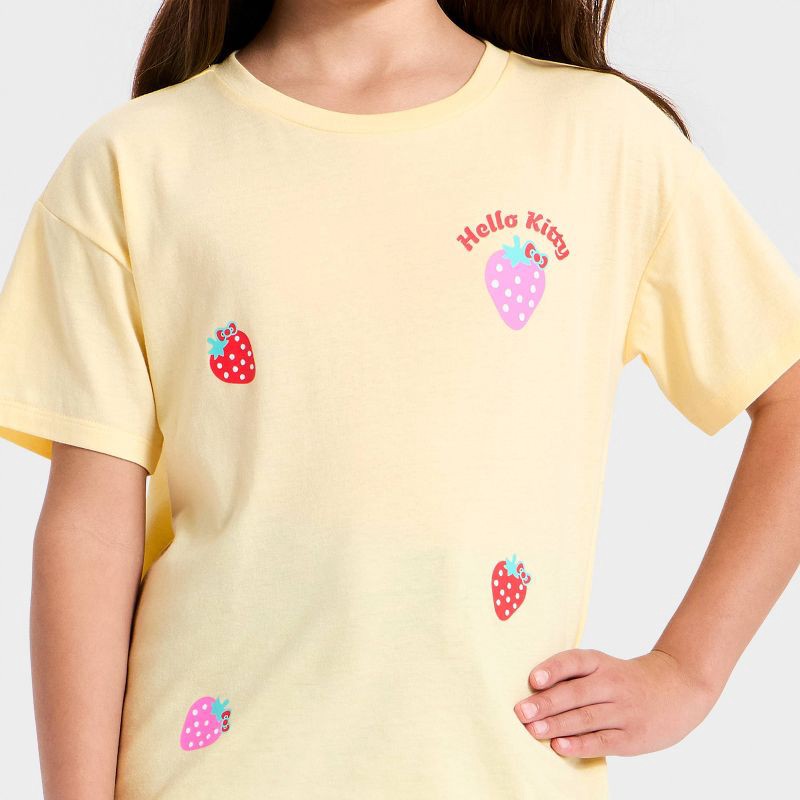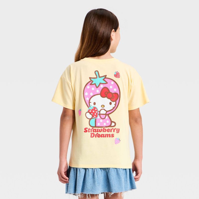 Add sweet, sunny style to her everyday looks with this Girls' Sanrio Hello Kitty Strawberry Dreams Oversized Graphic T-Shirt. Made from soft, breathable fabric, it keeps her comfortable for school day…