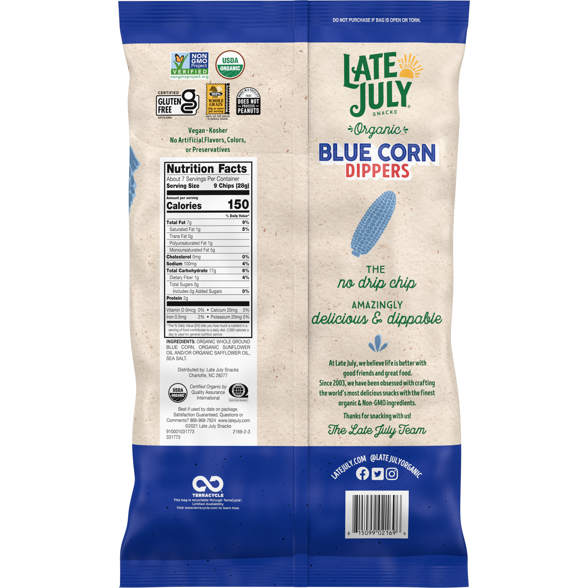 Late July Blue Corn Dippers Tortilla Chips were built for a high dive & dip. The perfect no-drip chip has a delicious new look and the same amazingly crafted taste. They''re made with perfectly salted…