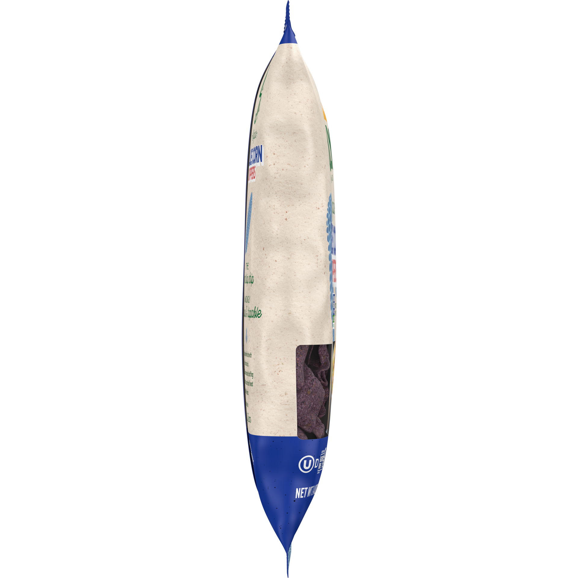INGREDIENTS: ORGANIC WHOLE GROUND BLUE CORN, ORGANIC SUNFLOWER OIL AND/OR ORGANIC SAFFLOWER OIL, SEA SALT.