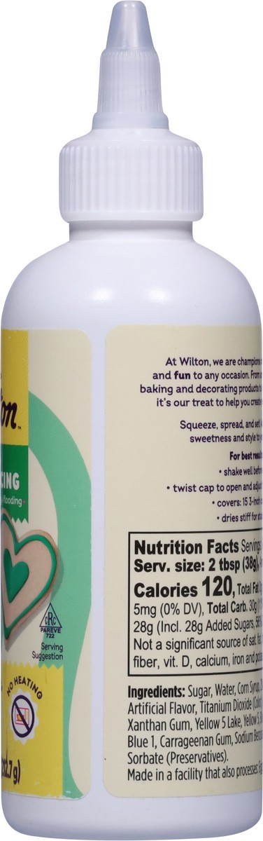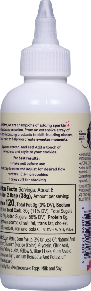 Contains bioengineered food ingredients. Est. 1929. Perfect for outlining + flooding. Ready to use. Dries stiff. No heating. At Wilton, we are champions of adding sparkle + and fun to any occasion. Fr…