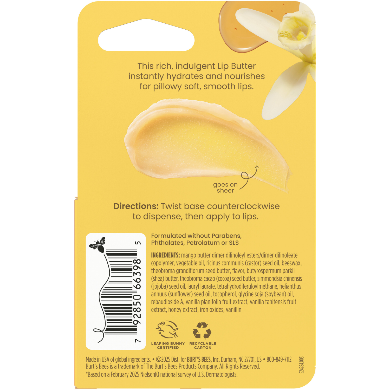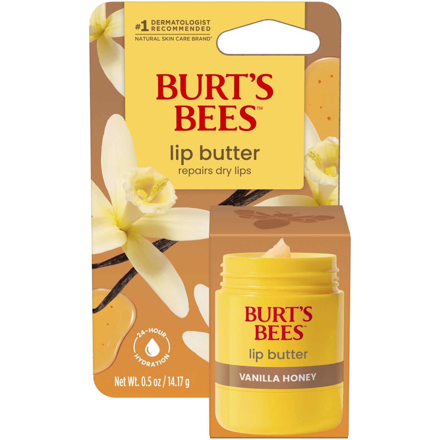 - INSTANTLY HYDRATES: Burt's Bees Vanilla Honey Lip Butter instantly hydrates lips and provides 24 hour hydration to quench dry lips and protect the lips' natural moisture barrier