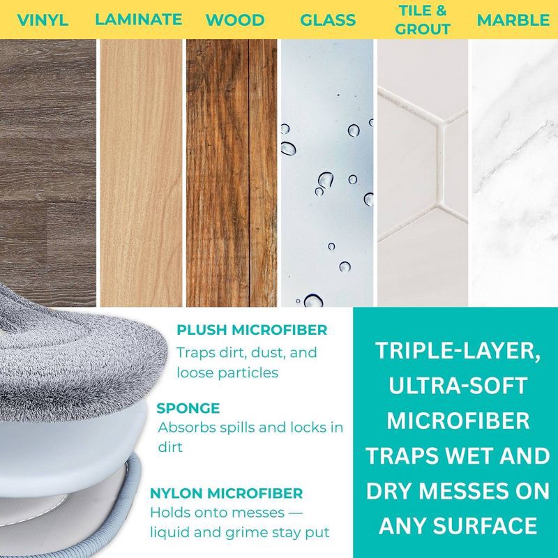 - Safe for All Floors: Gentle yet effective on tile, hardwood, laminate, vinyl, marble, and even glass or walls.
