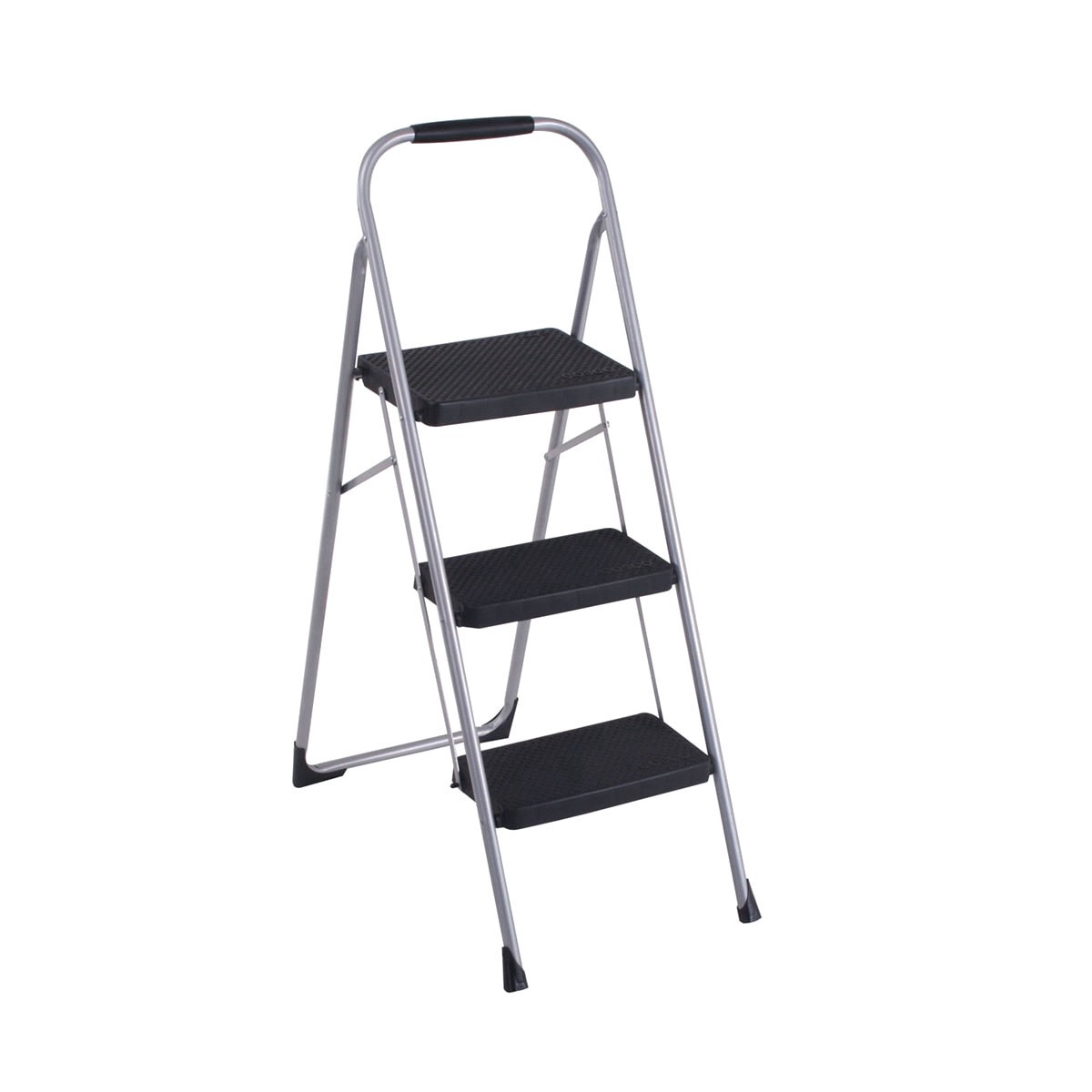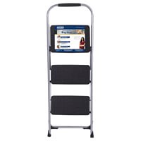 Cosco 3-Step Big Step Folding Step Stool With Rubber Hand Grip - Platinum/Black