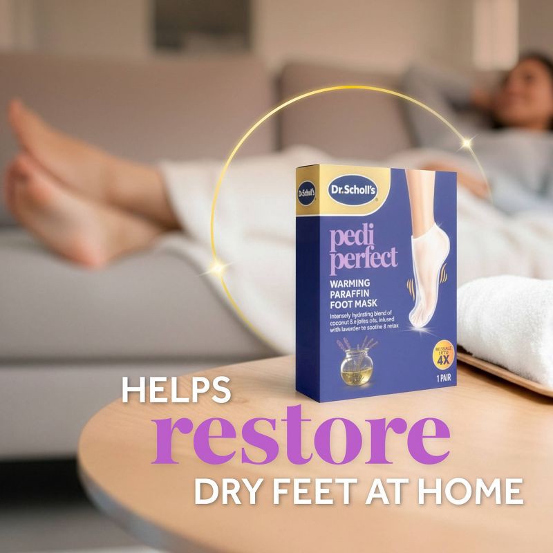 Bring a relaxing, spa-inspired experience home with Dr. Scholl's Pedi Perfect Warming Paraffin Foot Mask. Designed to moisturize in just minutes, this indulgent paraffin treatment helps improve the ap…