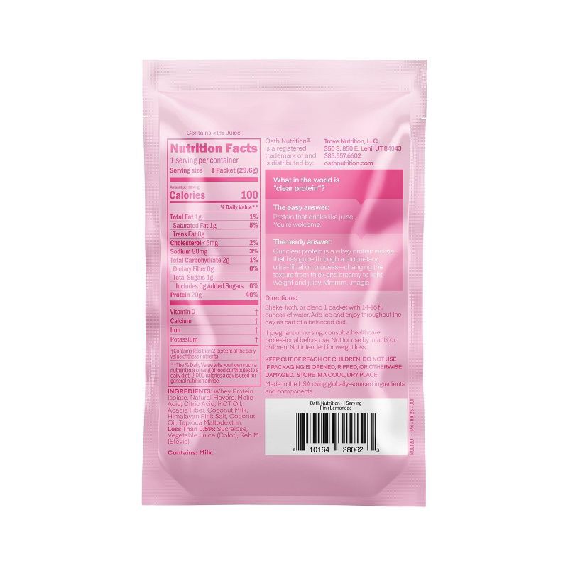 Oath Nutrition Single Serve Tray Sunrise Protein Powder - Pink Lemonade - Whey - 20g Protein