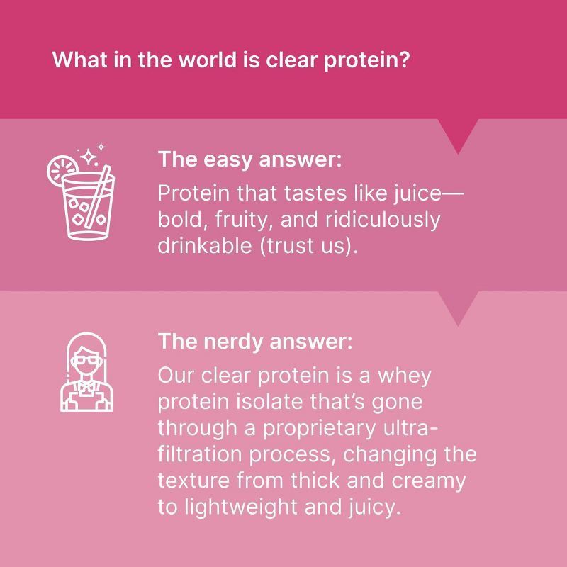 This whey protein thinks it's a delicious fruit juice. Light, refreshing flavor infused with 20g of high-quality protein—you don't know if you're at a beach or at the gym. Either way, your muscles win…