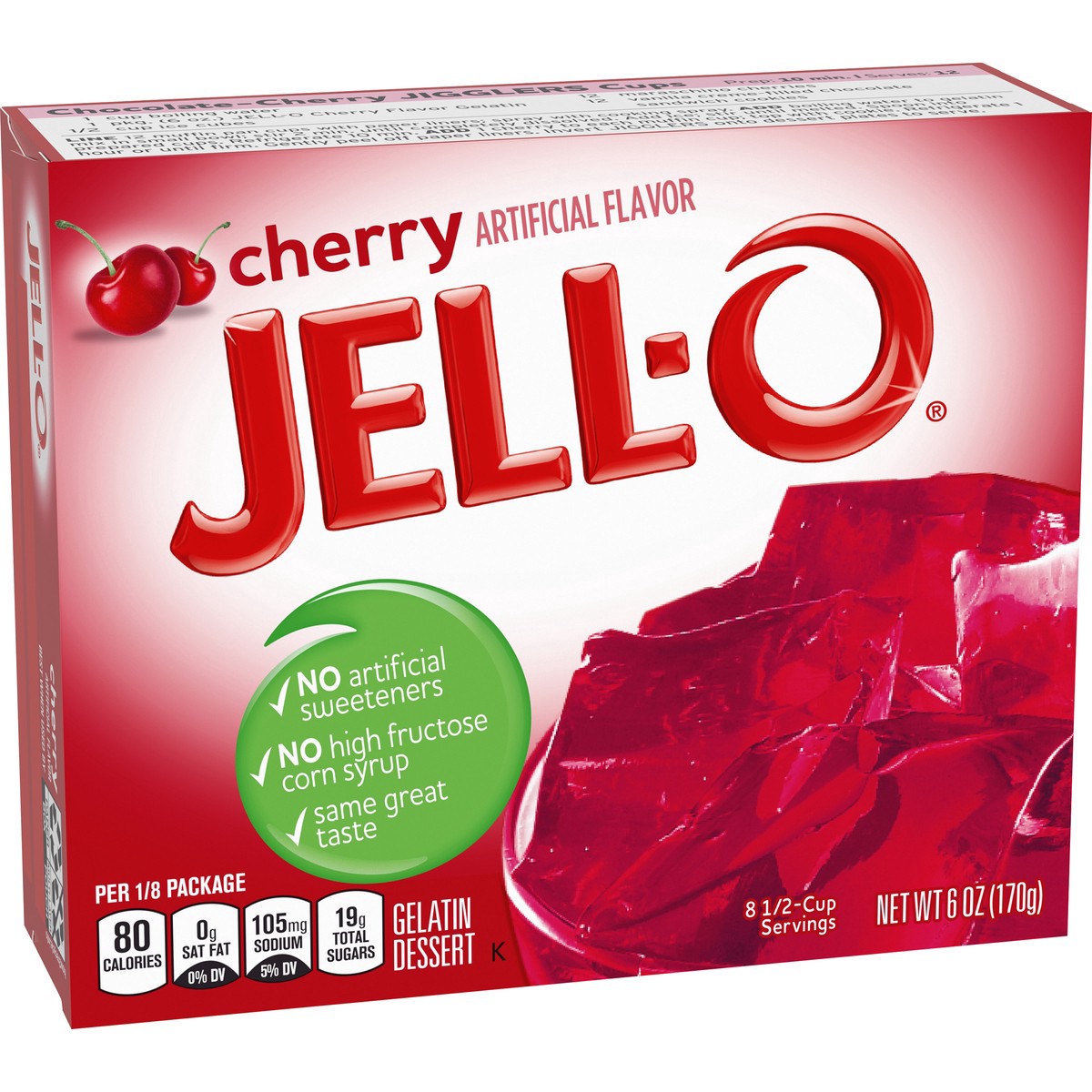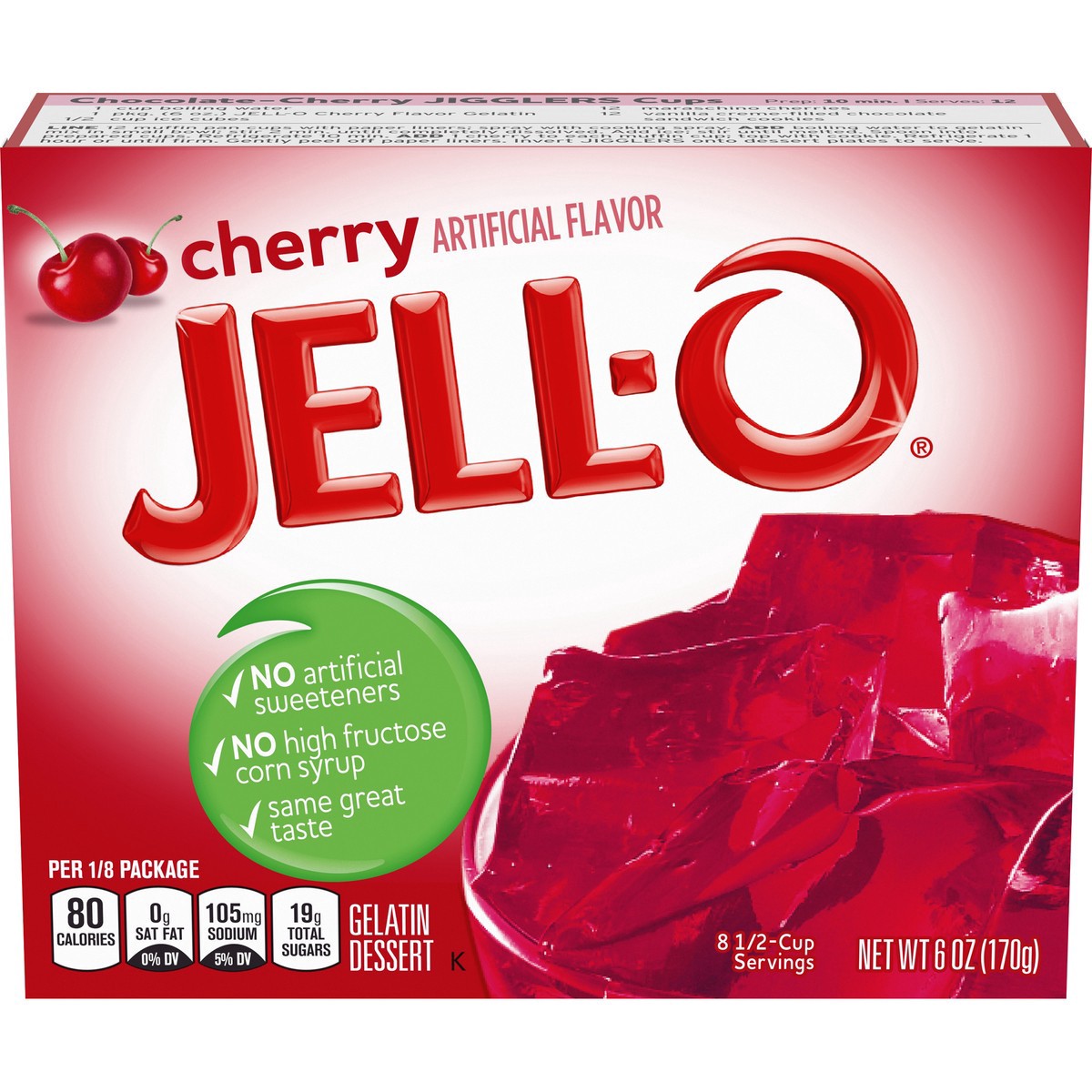 Snack happy. Jell-O Cherry Artificially Flavored Gelatin Dessert Mix lets you add some wonder to your day with a delicious snack. Spoon up a smile with our artificially flavored cherry Jell-O gelatin …