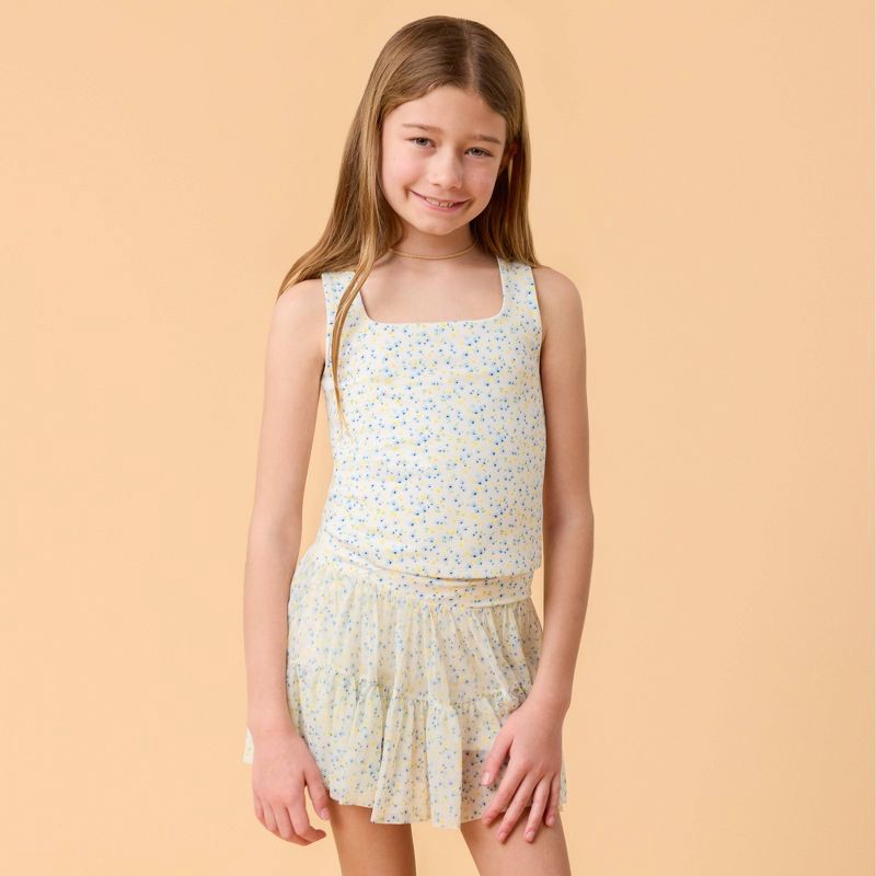 Blogilates Girls' Mommy & Me Ruffle Back Tank Top - White Floral Print S