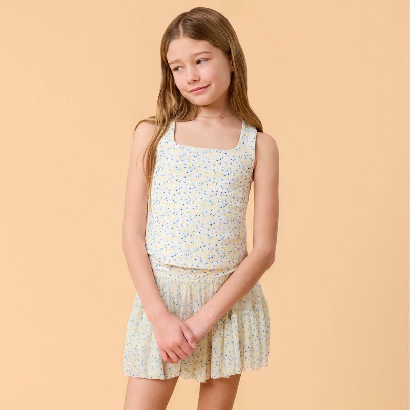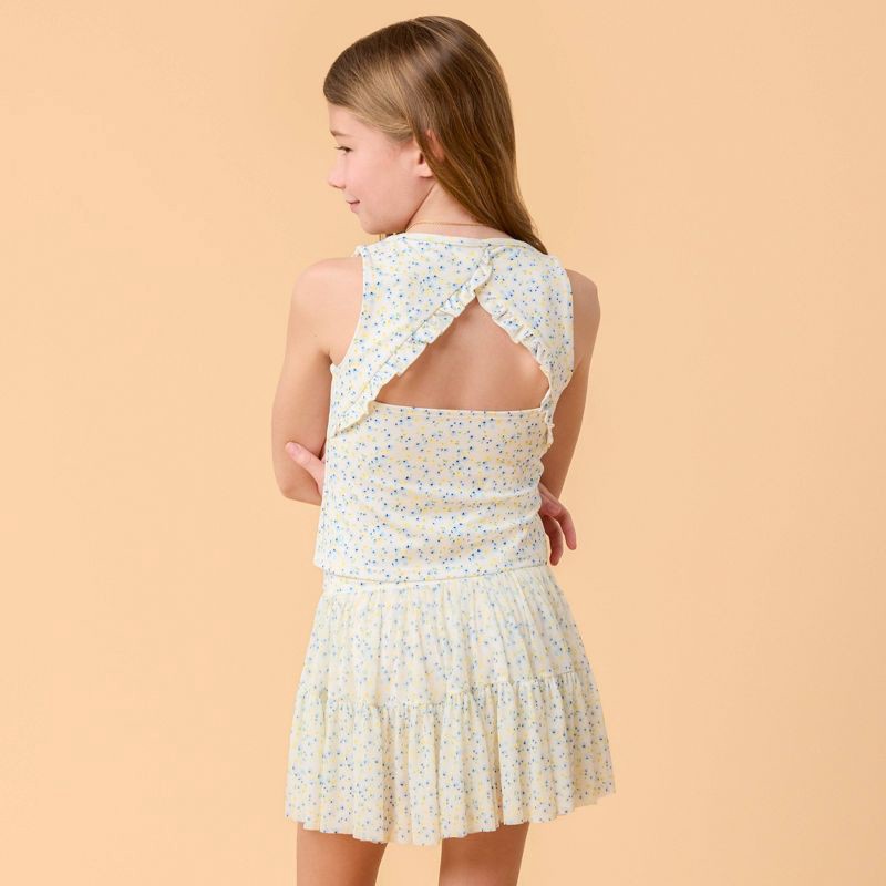 Blogilates Girls' Mommy & Me Ruffle Back Tank Top - White Floral Print M