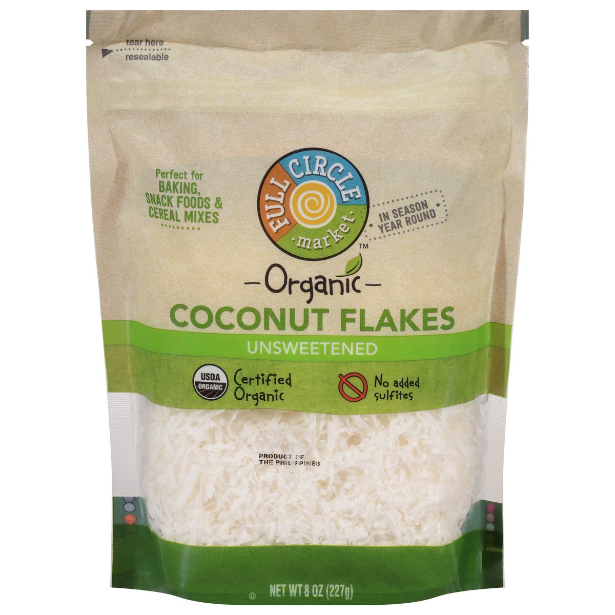 Full Circle Market Organic Unsweetened Coconut Flakes 8 oz