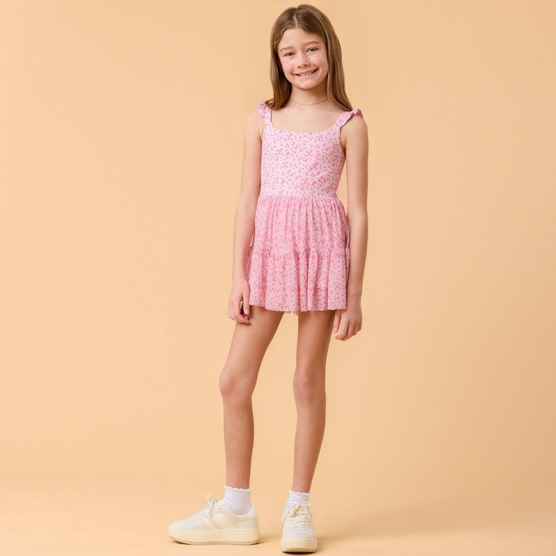 Blogilates Girls' Mommy & Me Ballerina Ruffle Dress - Pink Floral Print L