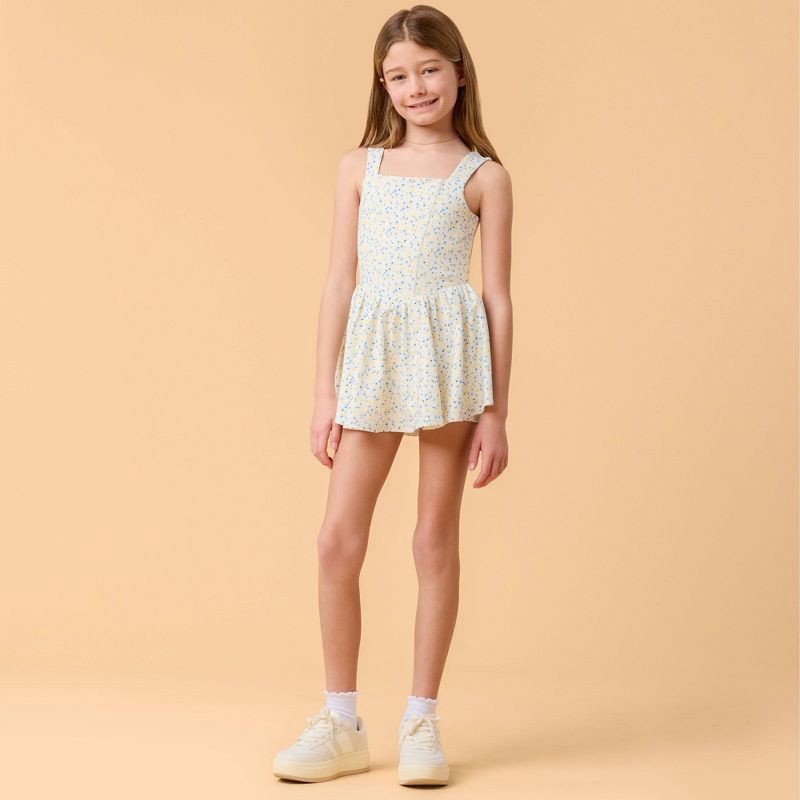 Blogilates Girls' Mommy & Me Princess Bow Back Dress - White Floral Print L