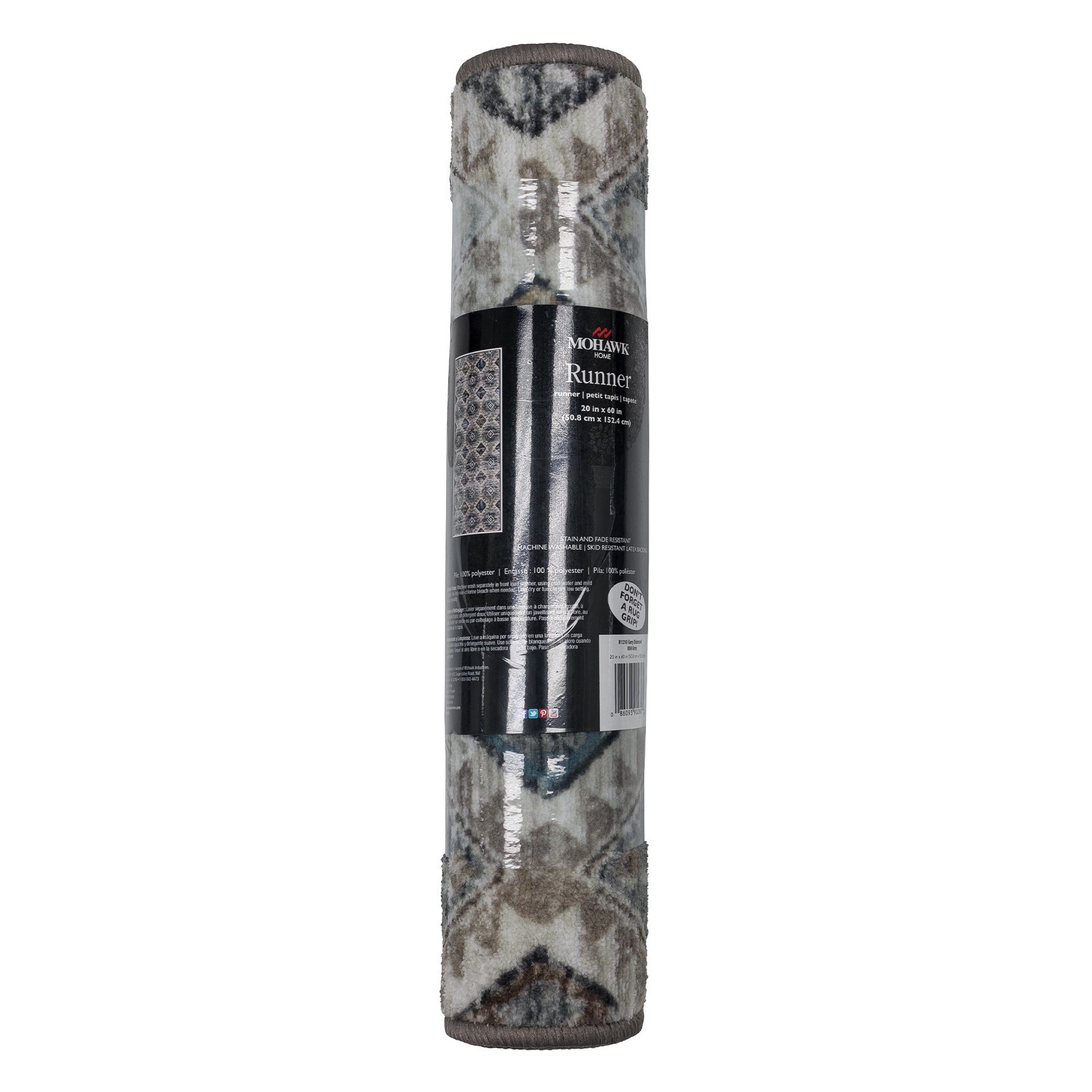 Mohawk Grey Diamond Runner Rug 20x60